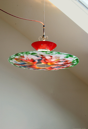 Strahler mit gewölbter Lochblende aus Plexi, bemalt in Schleiflacktechnik, bis 150 W Halogen, 2004 Foto:Scarlet Berner