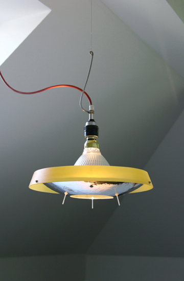 Strahler mit Hohlspiegel aus Alu und gelbem Kunststoff als Lochblende, 100 W Halogen, 2004 Foto:Scarlet Berner