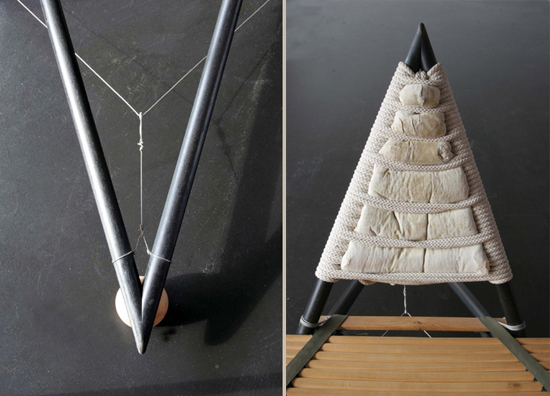 Esche, Gurte, Baumwollseil und Schaffell, 1984. Detail