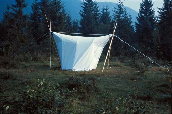 Einplanenkonstruktion mit Stützgräten, Grundfläche 2,5 x 2,5 m, 1983