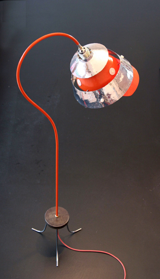 Mittelgroße Stehleuchte, verschiedene Metalle, teilweise lackiert, 150 W. 2004