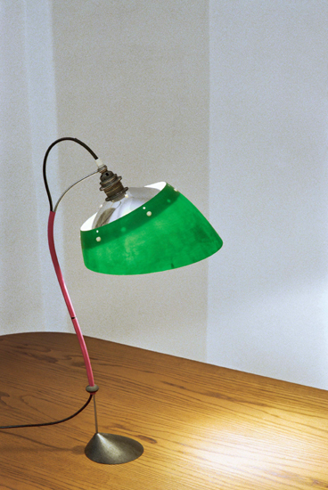 Schreibtischlampe mit Schim aus Alu und grünem, glasfaserverstärktem