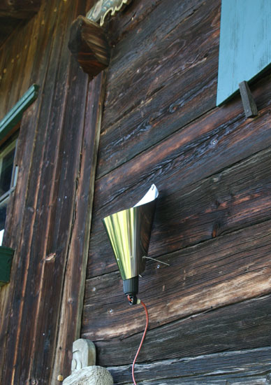 spritzwassergeschützter Strahler PAR 38 in Tüte aus rostfreiem Federstahlblech, 2005 Foto:Scarlet Berner