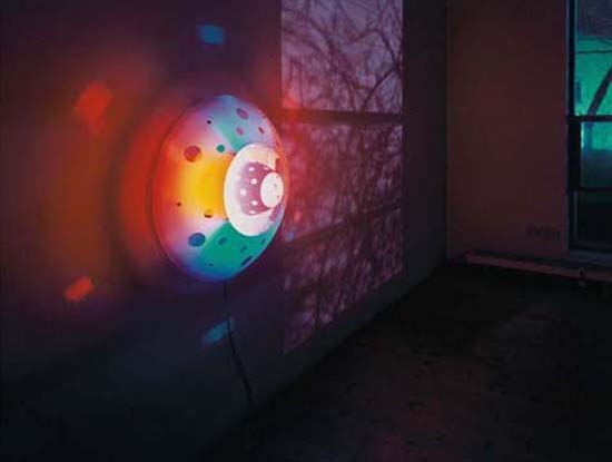 verschiedene Kunststoffe auf Aluminiumscheibe 80 cm. 1994. "..erzeugt eine leicht psychedelische Stimmung, ohne Nebenwirkungen" Foto:Scarlet Berner